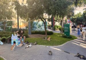 Yesterday we walked to Kennedy Park. It was full of families out enjoying a beautiful Sunday afternoon. The park is known for its feral cat colony. There are houses for them all over the park, as well as food and water. They all seemed content to get head scratches and belly rubs.